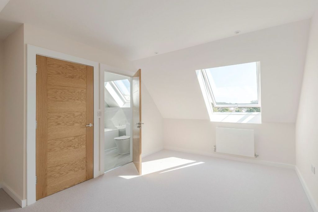 Ascending to the upper level unveils the pièce de résistance-a splendid living and kitchen area that epitomises exquisite beauty. Bifold doors gracefully lead to an expansive sun deck that overlooks the park and offers a glimpse of the distant sea views. The kitchen stands adorned with integrated appliances and elegant solid wood worktops, providing an abundance of space. Adjacent to the kitchen, a convenient WC with plumbing for auxiliary utilities awaits, catering to your practical needs.